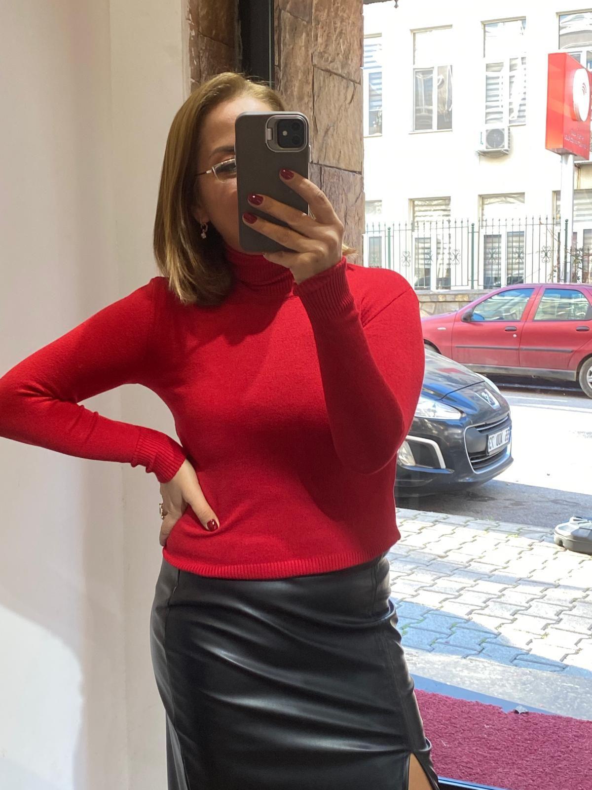 Basic Tam Balıkçı Kazak Kırmızı Yeni