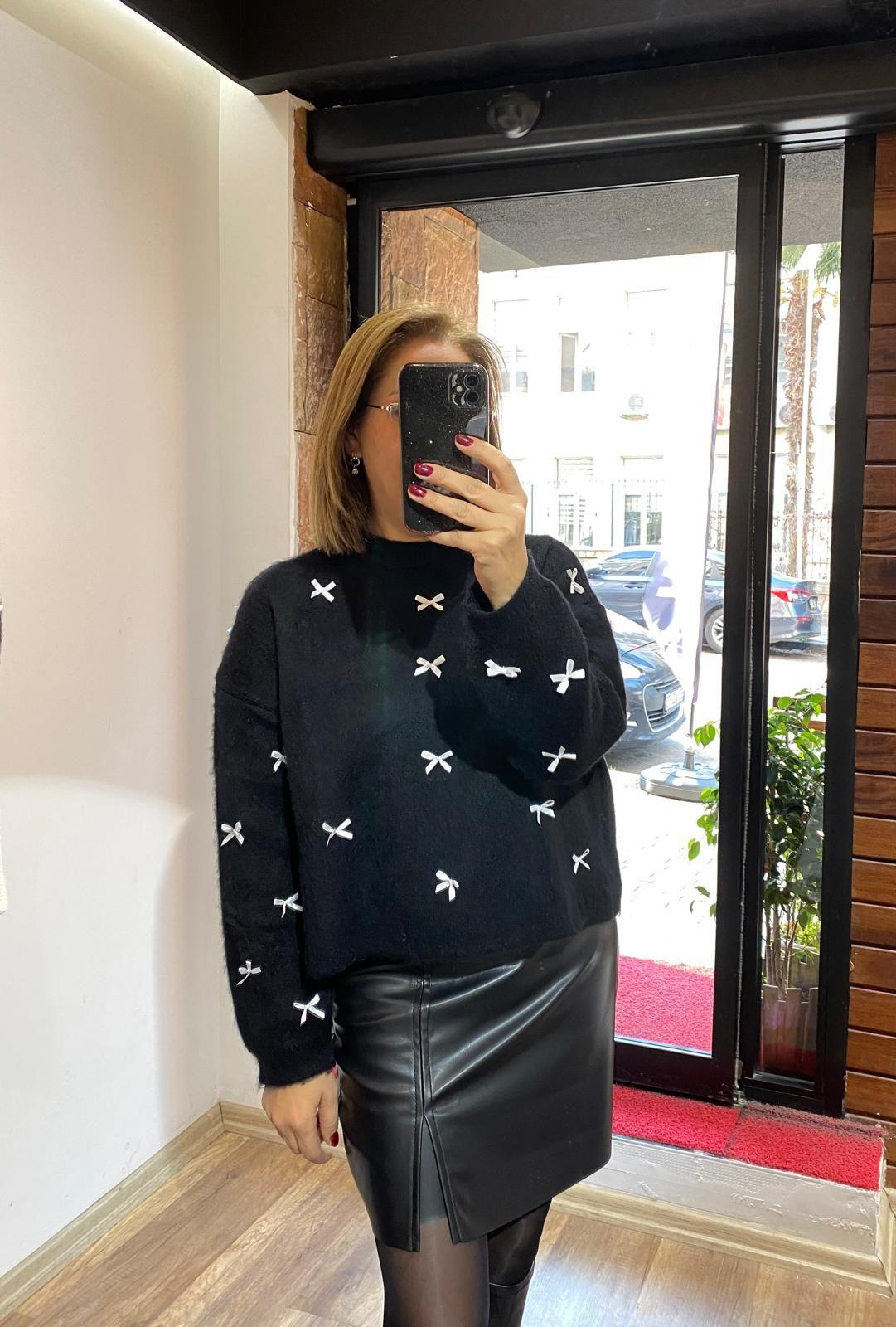 Bisiklet yaka basic  kurdele detaylı  yumuşak kazak. Günlük stilinizin vazgeçilmez parçalarından.Dolabını yenilemek istersen sen de bu sevimli kazağı  ekle.