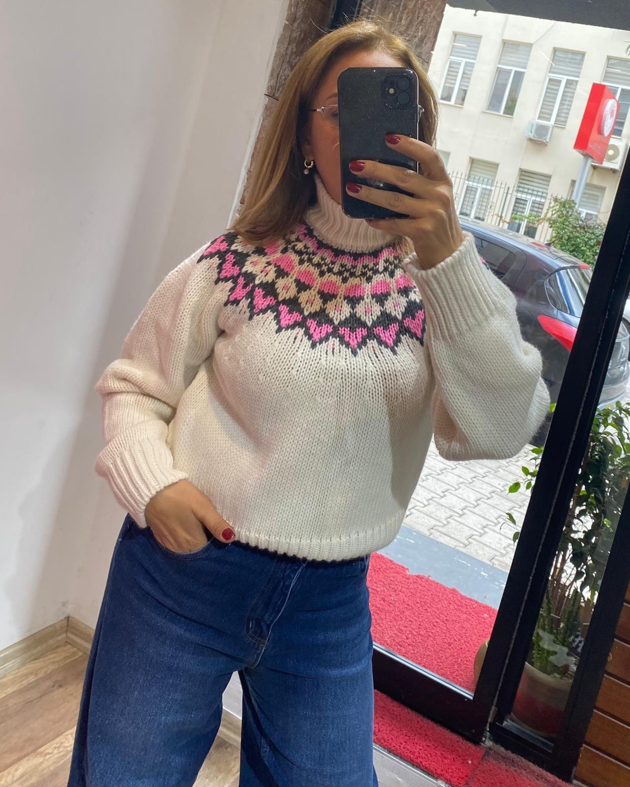 Premium krem üzeri desenli şık basic kazak..Gözler üzerinde..Almalısın.