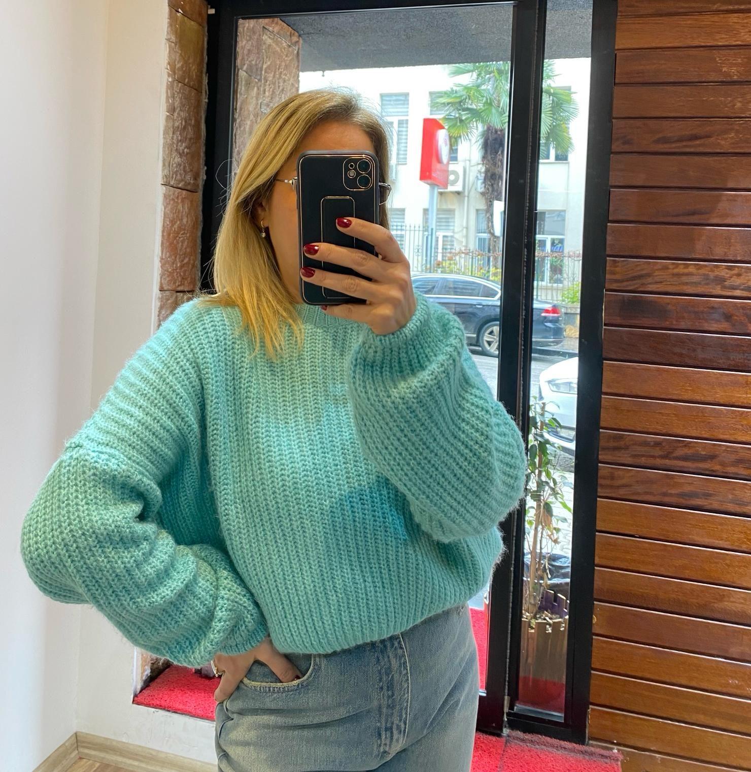 Spor şıklık istersen balon kol bu kazak olmalı dolabında.