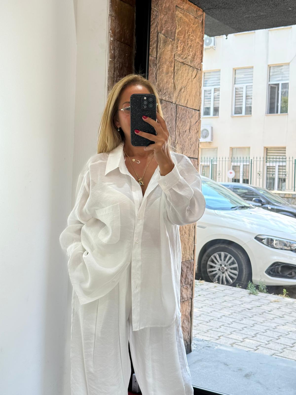 Tensel Oversize Şık Cepli Gömlek Beyaz