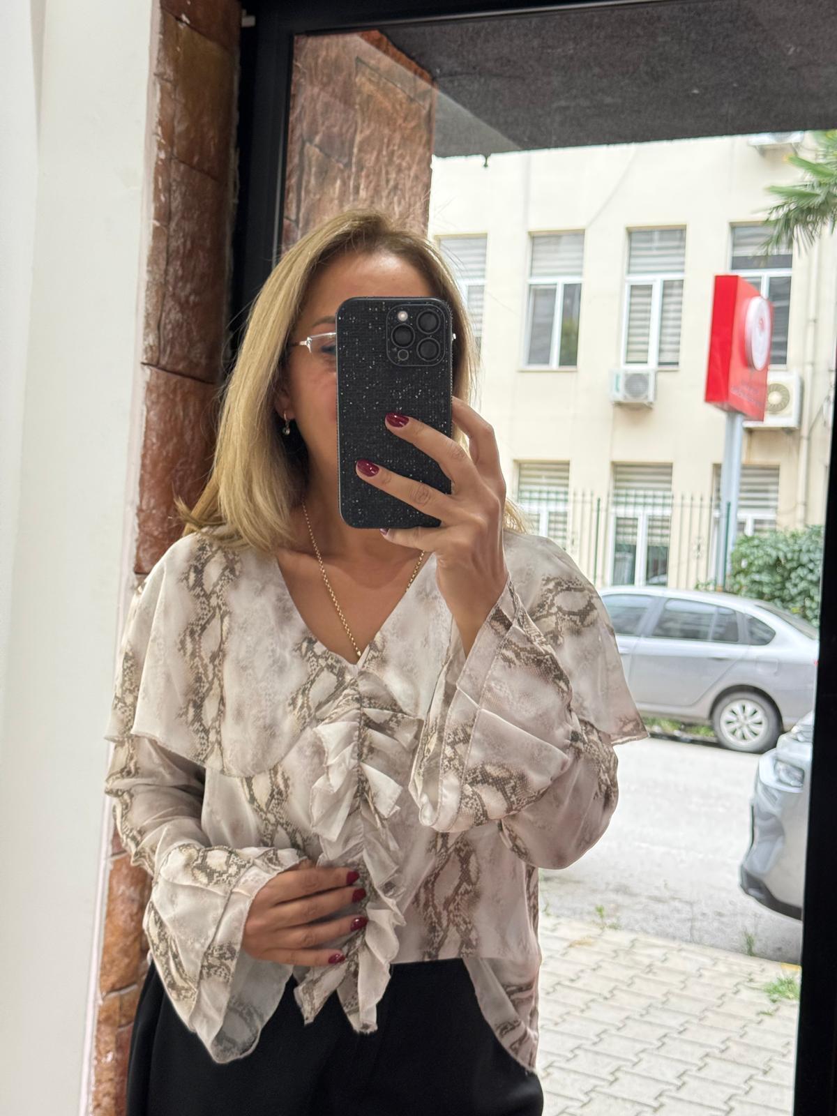 Yılan Desenli Fırfırlı Gömlek Yeni
